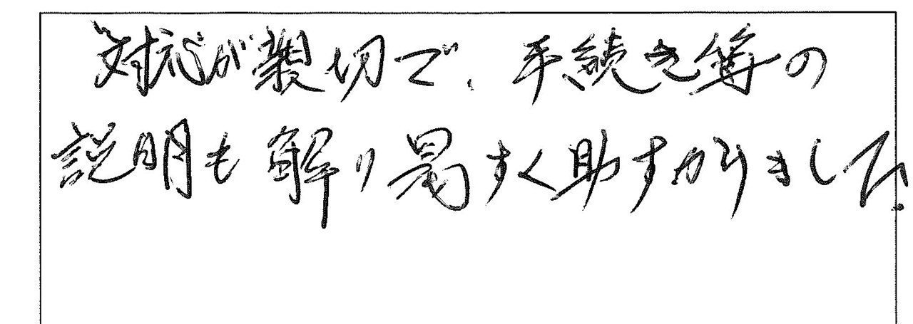 対応が親切で、手続き等の説明も解りやすく助かりました。